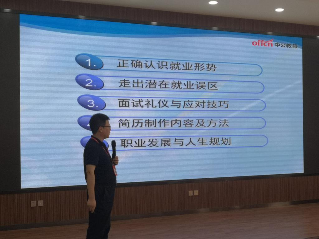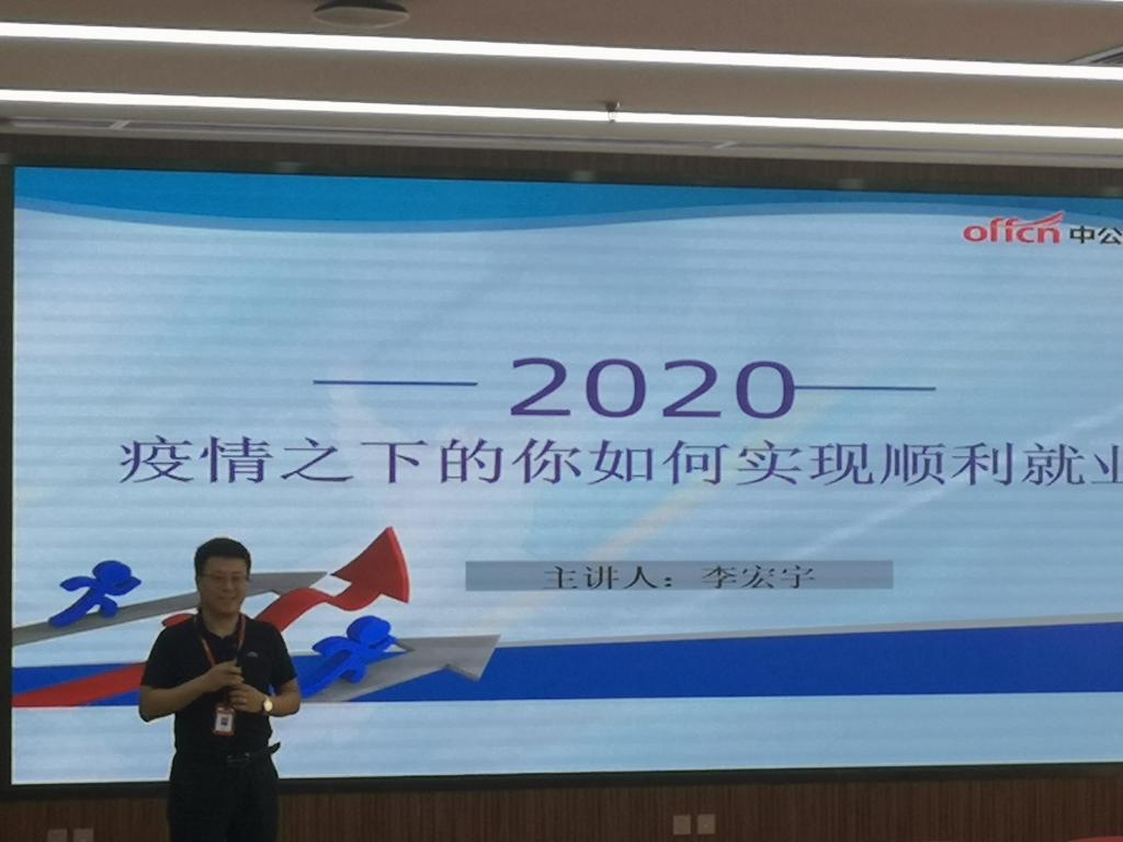 由人才招聘处主办,太阳成tyc122cc集团和理公司联合承办的“疫情之下的你如何实现顺利就业”专题讲座于6月18日在沣惠校区五楼报告厅成功举办,此次讲座邀请了中公教育资深研究专家李宏宇作为主讲嘉宾,2020届毕业生参加了此次讲座。太阳成tyc122cc集团员工管理科科长汪芳,就业辅导员范程程,理公司员工管理科科长李扬,就业辅导员杨陈东参加了会议。