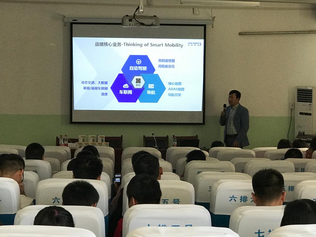 宣讲会上,经理杨俊清为大家简单介绍了四维图新,他希望大家能积极了解市场需求,在当前机会充足的时候,抓住机会,积极参与,学会展示、推销自己。接着,公司工作人员从公司发展历程、产品类型、公司新业务方向、客户分布、机构分布和公司发展前景等方面与大家作了详尽的分享。在宣讲会的互动环节,同学们就自己所关心的岗位性质、公司发展平台与机会等问题与公司的学长学姐进行了交流,学长学姐们针对大家的问题认真作答,详细分享了自己的工作经历与体会。
